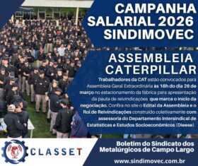 - Caterpillar – Assembleia para definir rumo da negociação coletiva acontece quinta-feira (26)