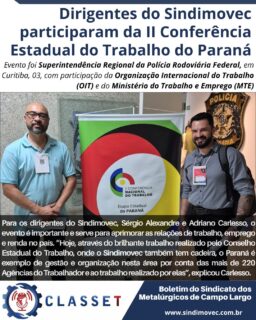 - Dirigentes do Sindimovec participaram da II Conferência Estadual do Trabalho do Paraná